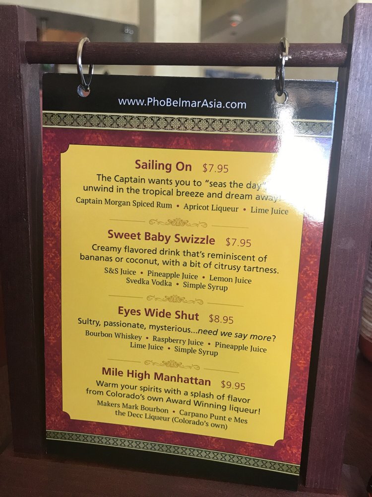 Pho Belmarasia is a vibrant cocktail bar offering Asian Fusion and Vietnamese cuisine in Lakewood, CO. With a plethora of utilities like delivery, takeout, reservations, and vegetarian options, this spot caters to a diverse range of diners. The casual atmosphere with moderate noise levels makes it perfect for a laid-back meal or a night out. The menu features a wide variety of dishes, from traditional Pho to innovative fusion creations. The establishment boasts amenities like full bar service, outdoor seating, and even a pool table for entertainment. Whether you're looking for a fun night out or a casual dining experience, Pho Belmarasia offers a unique blend of flavors and experiences for all occasions.